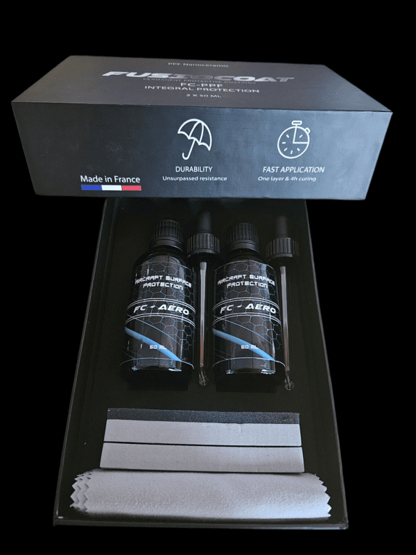 FC – AÉRO est à ce jour le seul revêtement nanocéramique qui sublime l’esthétique des surfaces aéronautiques peintes et métalliques, tout en les protégeant durablement contre les effets climatiques et les contaminants chimiques.